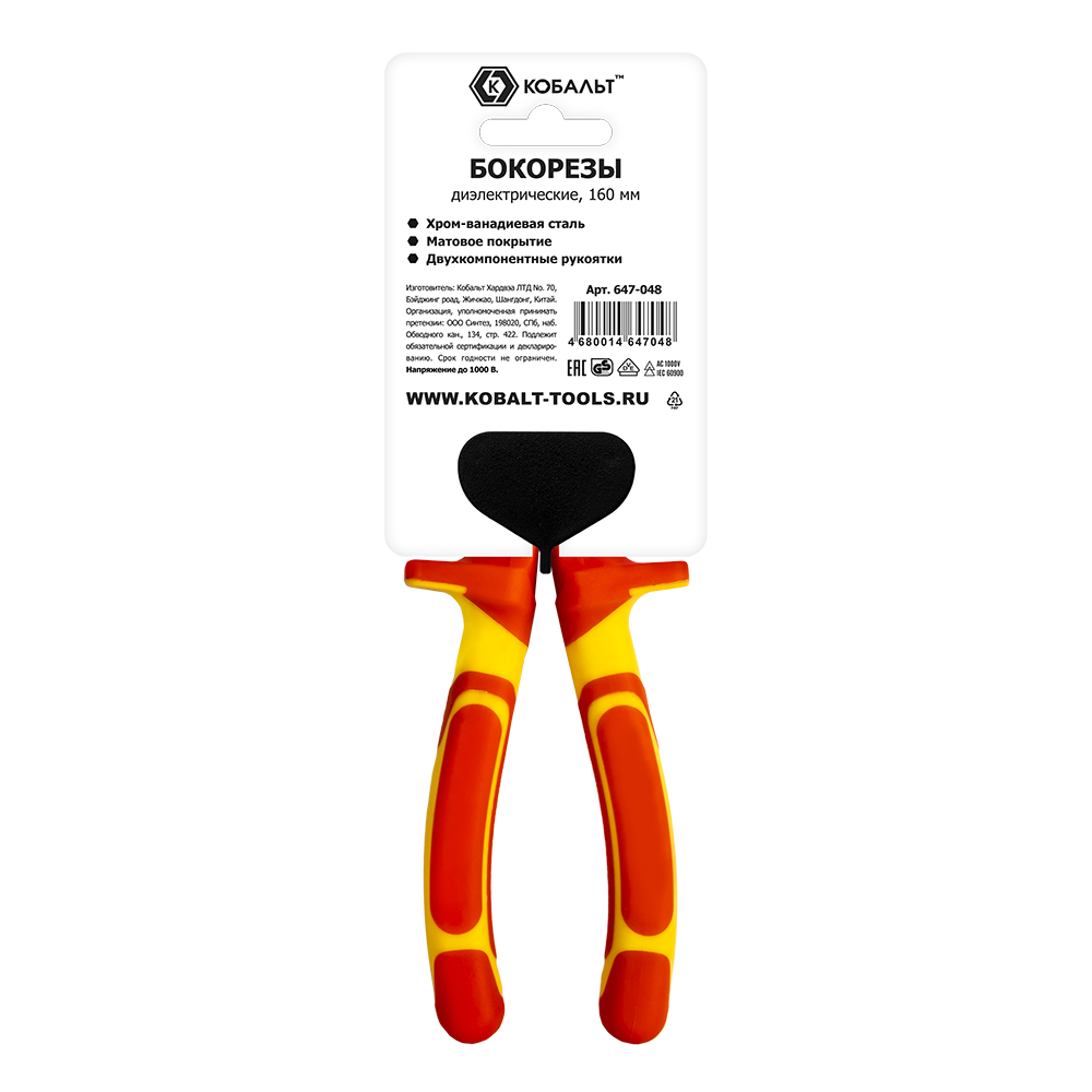 Бокорезы КОБАЛЬТ диэлектрические, 160 мм, 2-х компонентные рукоятки, CR-V, подвес
