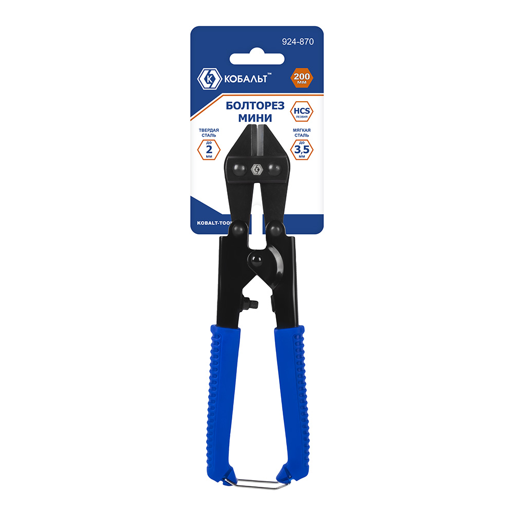 Болторез КОБАЛЬТ 200 мм, МИНИ, лезвия HCS, максимальный диаметр реза: 2 мм твёрд. сталь, 3.5 мм мягк.сталь