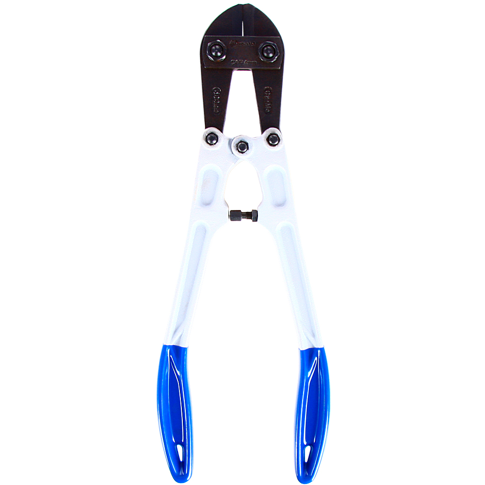 Болторез (арматурные ножницы) КОБАЛЬТ 242-496 310 мм облегчённый, предназначен для перекусывания болтов, шпилек, стальных прутков, арматуры, контейнерных пломб и прочих изделий из незакалённой стали и цветных металлов диаметром до 4 мм. Сменные прямые губки болтореза изготовлены из хром-молибденовой (Cr-Mo) стали с закалкой до твердости 59-63HRC. Рукоятки выполнены из облегчённого алюминиевого сплава.