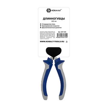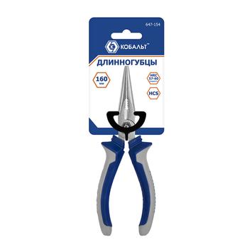 Длинногубцы КОБАЛЬТ 160 мм, с кусачками для проволоки, 2-х компонентные рукоятки, HCS, подвес
