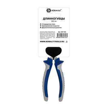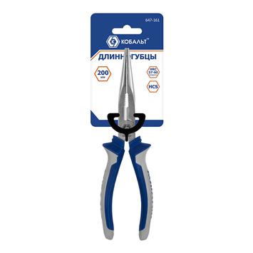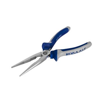 Длинногубцы КОБАЛЬТ 200 мм, с кусачками для проволоки, 2-х компонентные рукоятки, HCS, подвес