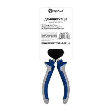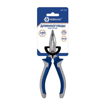Длинногубцы КОБАЛЬТ изогнутые, 160 мм, с кусачками для проволоки, 2-х компонентные рукоятки, HCS, подвес