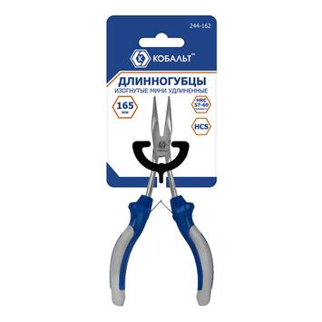 Длинногубцы КОБАЛЬТ изогнутые мини удлиненные, 165 мм, 2-х компонентные рукоятки, HCS, подвес