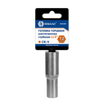Головка торцевая глубокая КОБАЛЬТ 1/2", 12 мм, CR-V, подвес