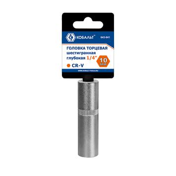 Головка торцевая глубокая КОБАЛЬТ 1/4", 10 мм, CR-V, подвес