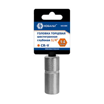 Головка торцевая глубокая КОБАЛЬТ 1/4", 14 мм, CR-V, подвес