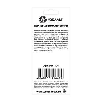 Кернер КОБАЛЬТ автоматический, 4 х 127 мм, материал рукоятки сталь, шар из полипропилена, стержень хром-ванадиевый, блистер