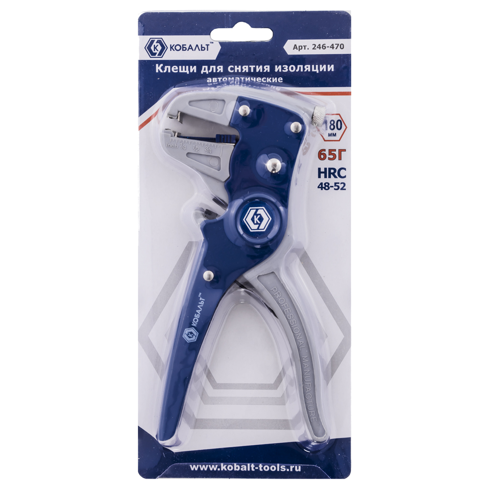 Клещи для снятия изоляции 180мм автоматические КОБАЛЬТ 246-470, предназначены для обрезки и быстрого снятия изоляции с проводов сечением от 0,75 до 6мм2 при производстве электромонтажных работ. Механизм изготовлен из углеродистой инструментальной стали У10 (HCS). Эргономичные, подпружиненные рукоятки повышают комфортность работы. Встроенные ножницы для быстрой аккуратной обрезки алюминиевых и медных проводов. Съемник изоляции (стриппер) оснащен винтом для регулирования усилия захвата изоляции и подвижным упором-ограничителем для быстрой настройки длины съема изоляции в пределах 1-18 мм.