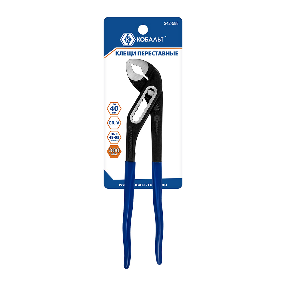 Клещи переставные КОБАЛЬТ 300 мм, максимальный захват 40 мм, CR-V, подвес