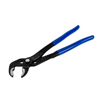 Клещи переставные КОБАЛЬТ 242-564 300 мм с кнопочным фиксатором , предназначены для завинчивания/отвинчивания гаек трубных резьбовых соединений при монтаже инженерных систем; кратковременного удержания различных деталей во время обработки, гибки или правки, используя клещи в качестве ручных тисков. Также переставные клещи в ряде случаев хорошо заменяют разводной или трубный ключ, а также целый набор рожковых ключей. Изготовлены из хром-ванадиевой инструментальной стали (CrV) с закалкой рабочих поверхностей в масле до 49-52 HRC. Надежный двойной реечный механизм регулировки с кнопочным фиксатором позволяет быстро и удобно подобрать необходимую ширину захвата с минимальной дискретностью. Губки с насечкой максимально надежно фиксируют даже поврежденную гайку или обрабатываемую деталь. Рукоятки покрыты ПВХ изоляцией. Общая длина 300 мм, максимальный размер захвата 40 мм.