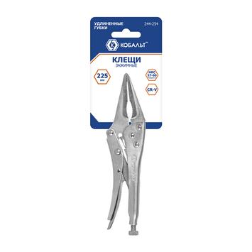 Клещи зажимные КОБАЛЬТ 225 мм, удлиненные губки, максимальный захват 30 мм, CR-V, подвес