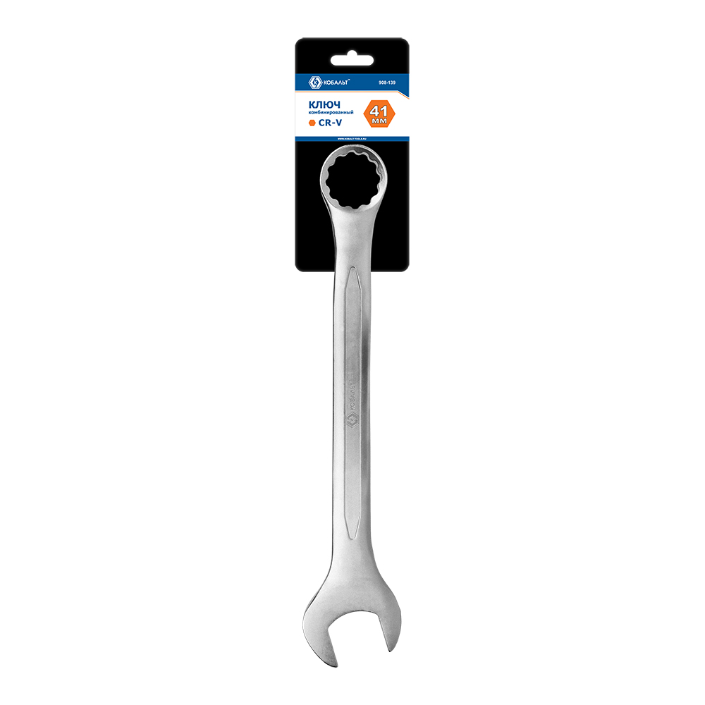 Ключ комбинированный КОБАЛЬТ 908-139 , 41 мм., с рожковым и накидным профилями, предназначен для откручивания/закручивания гаек и болтов при обслуживании автомобильной, сельскохозяйственной и железнодорожной техники. Наиболее востребованы в автослесарных мастерских, станциях технического обслуживания, строительных объектах, мастерских по обслуживанию гаражного оборудования. Матовая хромовая поверхность ключа обеспечивает надёжный хват, препятствует выскальзыванию инструмента из рук и предохраняет изделие от коррозии. 12-и гранный профиль накидной части позволяет работать с головками болтов и гаек как 6-и, так и 12-и гранного профиля. Ключ имеет специальный изгиб 15 градусов для работы в местах с отграниченным доступом к крепежу. Изготовлен из хром-ванадиевой стали.