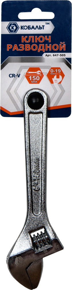 Ключ разводной КОБАЛЬТ 150 мм, ширина захвата 19 мм, CR-V, подвес