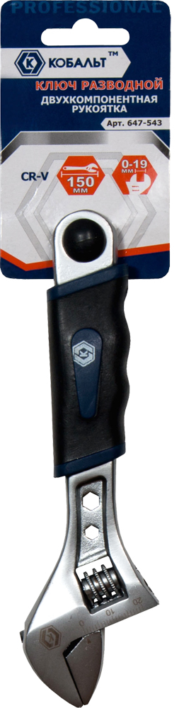 Ключ разводной КОБАЛЬТ 150 мм, ширина захвата 19 мм, двухкомпонентная рукоятка CR-V, подвес