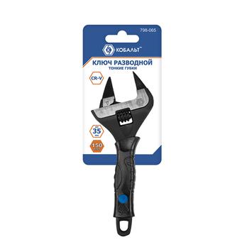 Ключ разводной с тонкими губками КОБАЛЬТ 150 мм, ширина захвата 35 мм, двухкомпонентная рукоятка CR-V подвес