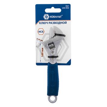 Ключ разводной с увеличенным хватом КОБАЛЬТ 160 мм, ширина захвата 24 мм, двухкомпонентная рукоятка, подвес