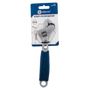 Ключ разводной с увеличенным хватом КОБАЛЬТ 210 мм, ширина захвата 30 мм, двухкомпонентная рукоятка, подвес