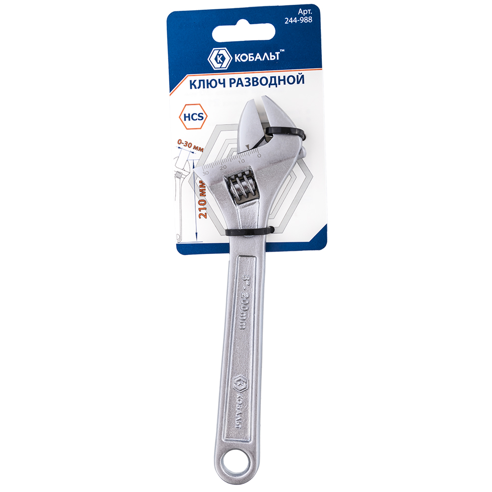 Ключ разводной с увеличенным хватом КОБАЛЬТ 210 мм, ширина захвата 30 мм, подвес