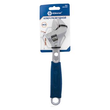 Ключ разводной с увеличенным хватом КОБАЛЬТ 260 мм, ширина захвата 35 мм, двухкомпонентная рукоятка, подвес