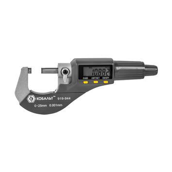 Микрометр КОБАЛЬТ цифровой, диапазон измерений 0-25 мм, точность 0,001 мм, кейс