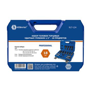 Набор головок торцевых ударных глубоких КОБАЛЬТ 1/2", 18 ПРЕДМЕТОВ: головки 14 шт.