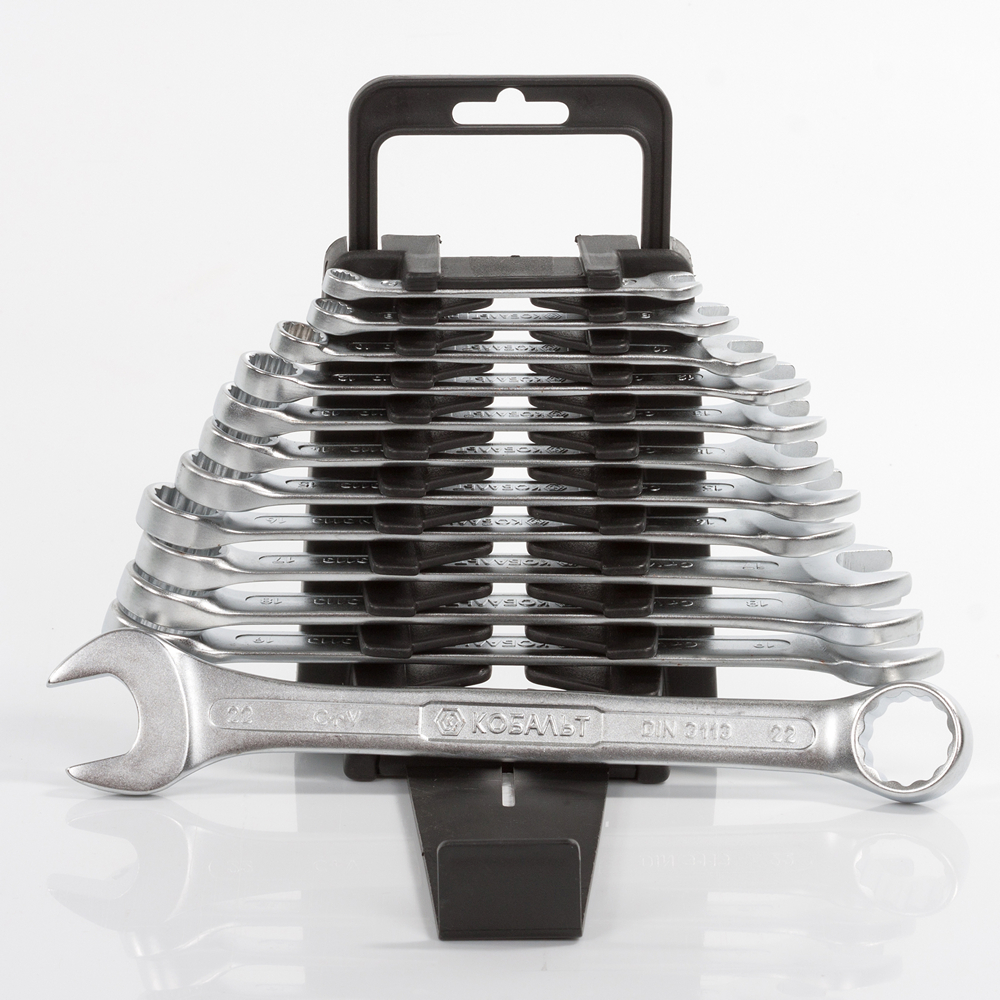 Набор ключей комбинированных КОБАЛЬТ 6,8,10,12,13,14,15,16,17,18,19,22 мм, 12 ШТ., держатель