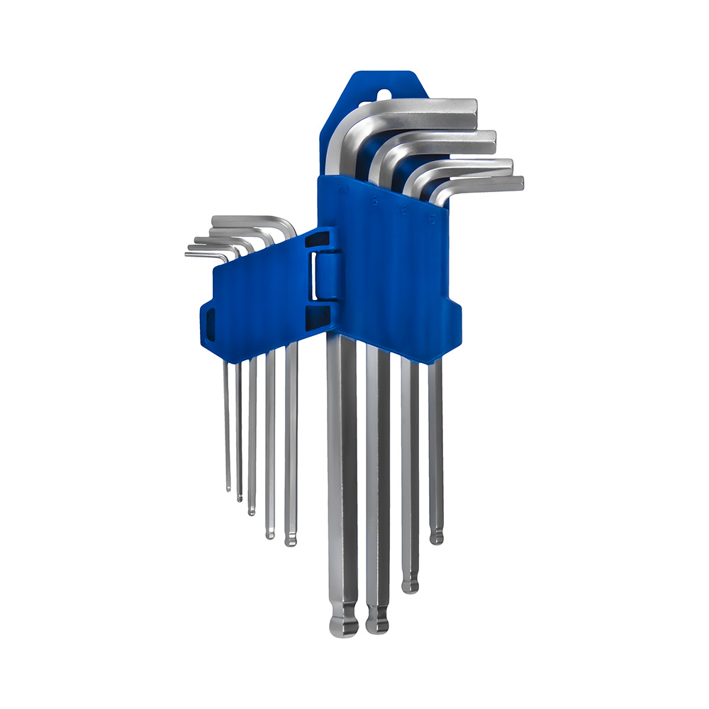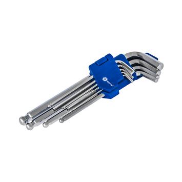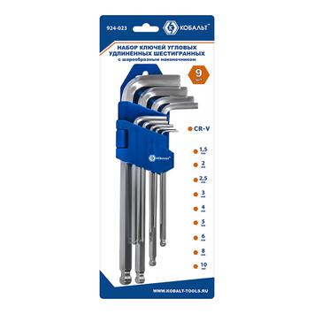 Набор ключей угловых удлинённых КОБАЛЬТ шестигранных: 1.5, 2, 2.5, 3, 4, 5, 6, 8, 10 мм, с шаром, CR-V, подвес