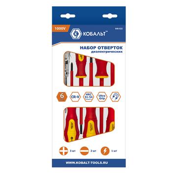 Набор отверток КОБАЛЬТ диэлектрических Ultra Grip, 6 ШТ: РН1, РН2, РН3, SL4, SL5.5, индикаторная отвёртка, CR-V, коробка