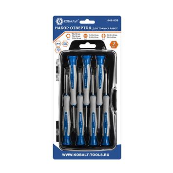 Набор отверток КОБАЛЬТ для точных работ Ultra Grip 50 мм, 7 ШТ: SL2.5, SL3.0, PH00, PH0, T8, T9, T10, CR-V, кейс, блистер