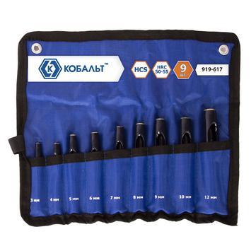 Набор просечек КОБАЛЬТ 3,4,5,6,7,8,9,10,12 мм, HCS, 9 ПРЕДМЕТОВ, чехол