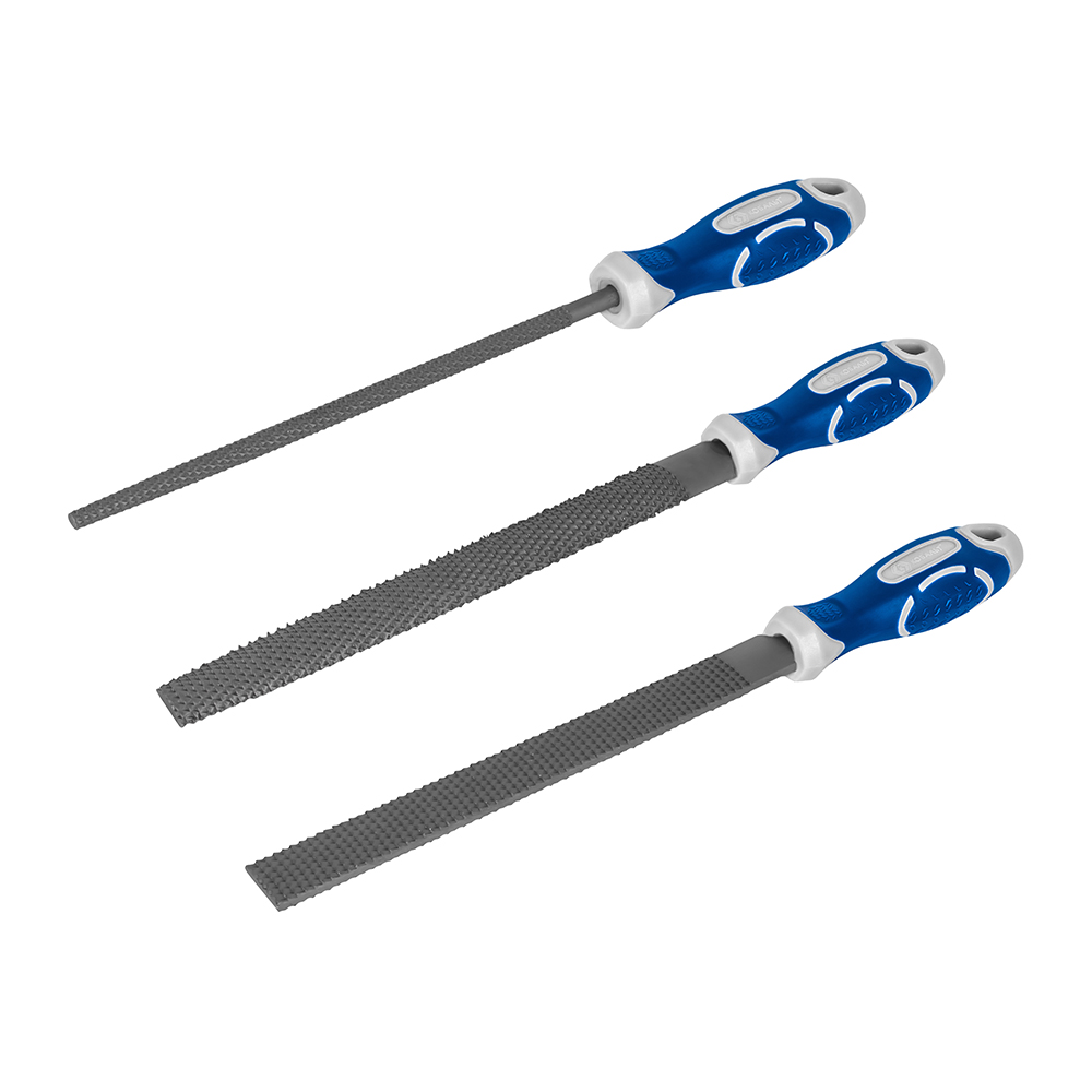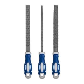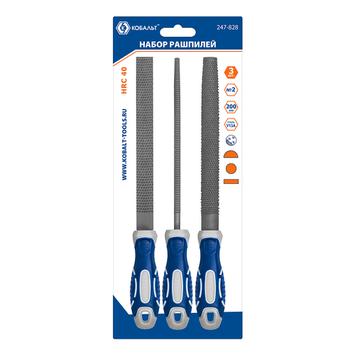 Набор рашпилей КОБАЛЬТ насечка №2, длина рабочая/общая 180/310, 2-х компонентные рукоятки, 3 ШТУКИ, блистер