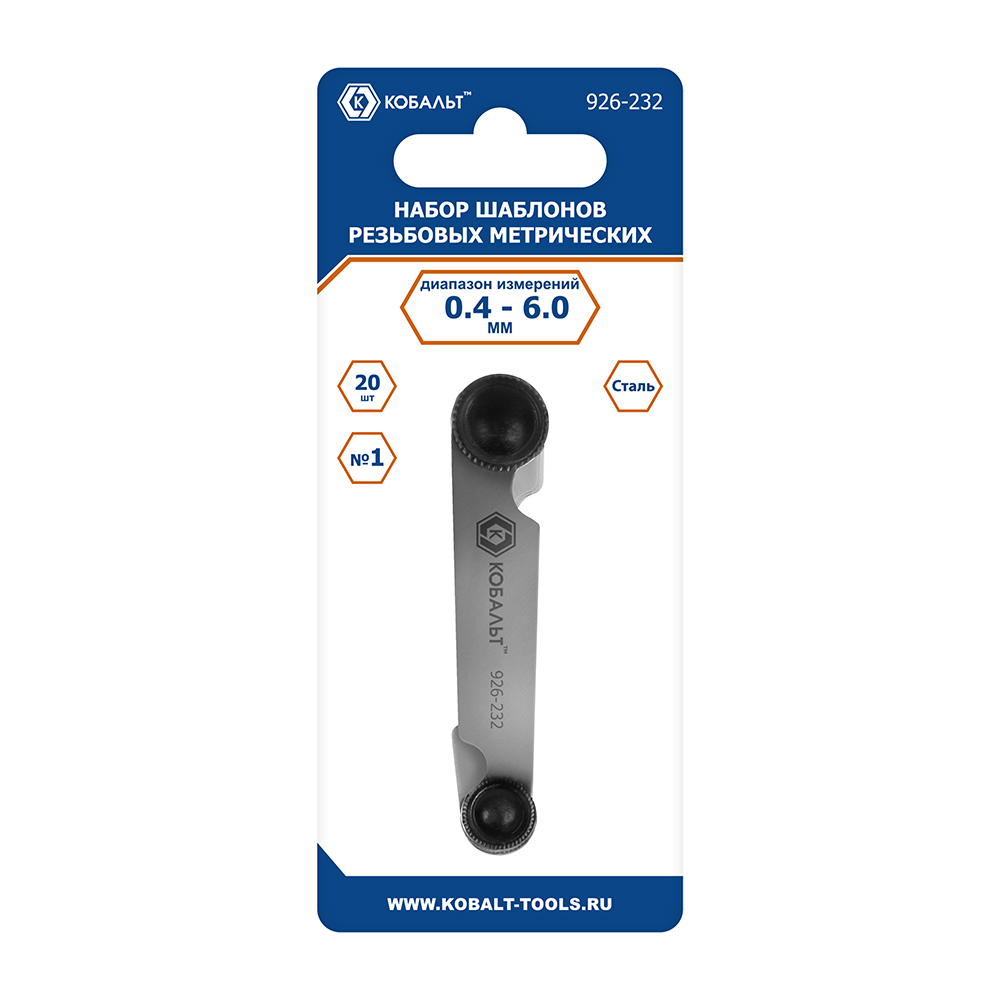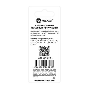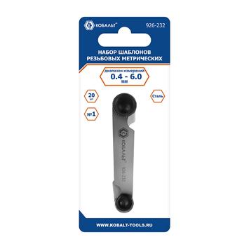 Набор шаблонов резьбовых КОБАЛЬТ метрических, диапазон измерений шага резьбы 0.4 - 6 мм, 20 шт., блистер