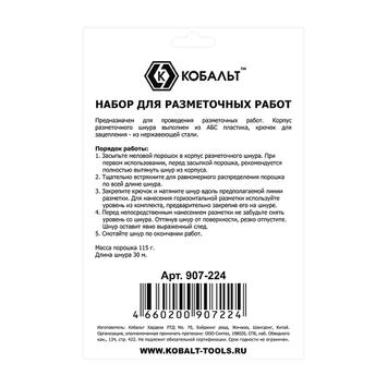 Набор разметочный КОБАЛЬТ 907-224 используется при строительных и отделочных работах. Предназначен для нанесения линий на размечаемую поверхность. Корпус разметочного шнура выполнен из АБС пластика. Крючок для зацепления из нержавеющей стали.Шнур из полимерного материала и хлопка. Набор дополнительно оснащён уровнем, для наиболее точного расположения нити как по горизонтали так и вертикали.