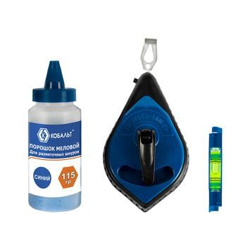 Набор шнур + краска КОБАЛЬТ , длина шнура 30 м., в пластиковом корпусе + синий меловой порошок, 115 гр. + уровень