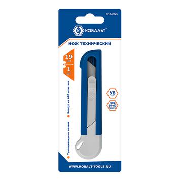 Нож технический КОБАЛЬТ трапециевидное лезвие 19 мм