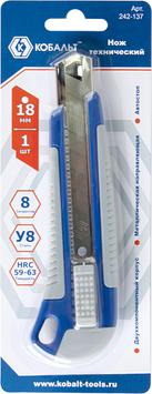 Нож технический КОБАЛЬТ лезвие 18 мм, двухкомпонентный корпус, металлическая направляющая, автостоп, блистер