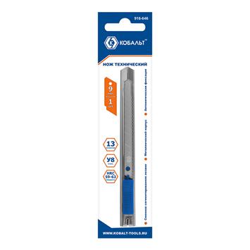 Нож технический КОБАЛЬТ лезвие 9 мм, металлический корпус, автостоп, блистер