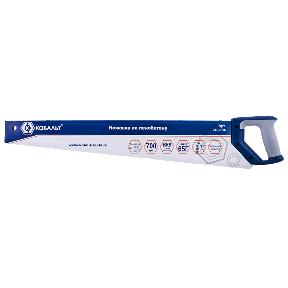Ножовка по пенобетону КОБАЛЬТ 700 мм, 1 TPI, тефлон. покр., твердосплав. напайки на зубьях, 2-х комп. рукоятка