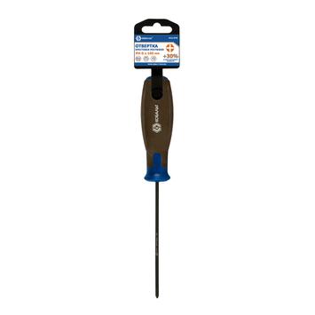 Отвертка POLYWOOD КОБАЛЬТ PZ-2 х 100 мм CR-V, древесно-полимерная рукоятка, подвес