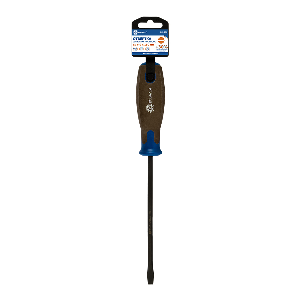 Отвертка POLYWOOD КОБАЛЬТ SL 6,0 х 150 мм, CR-V, древесно-полимерная рукоятка, подвес
