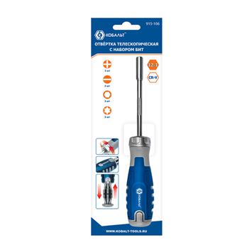 Отвертка рукоятка КОБАЛЬТ Ultra Grip, телескопическая, с набором бит, CR-V, 8 ШТ., блистер