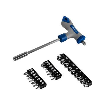 Отвертка рукоятка КОБАЛЬТ Т-образная, с набором бит и торцевых головок 1/4", CR-V, 24 ПР., блистер
