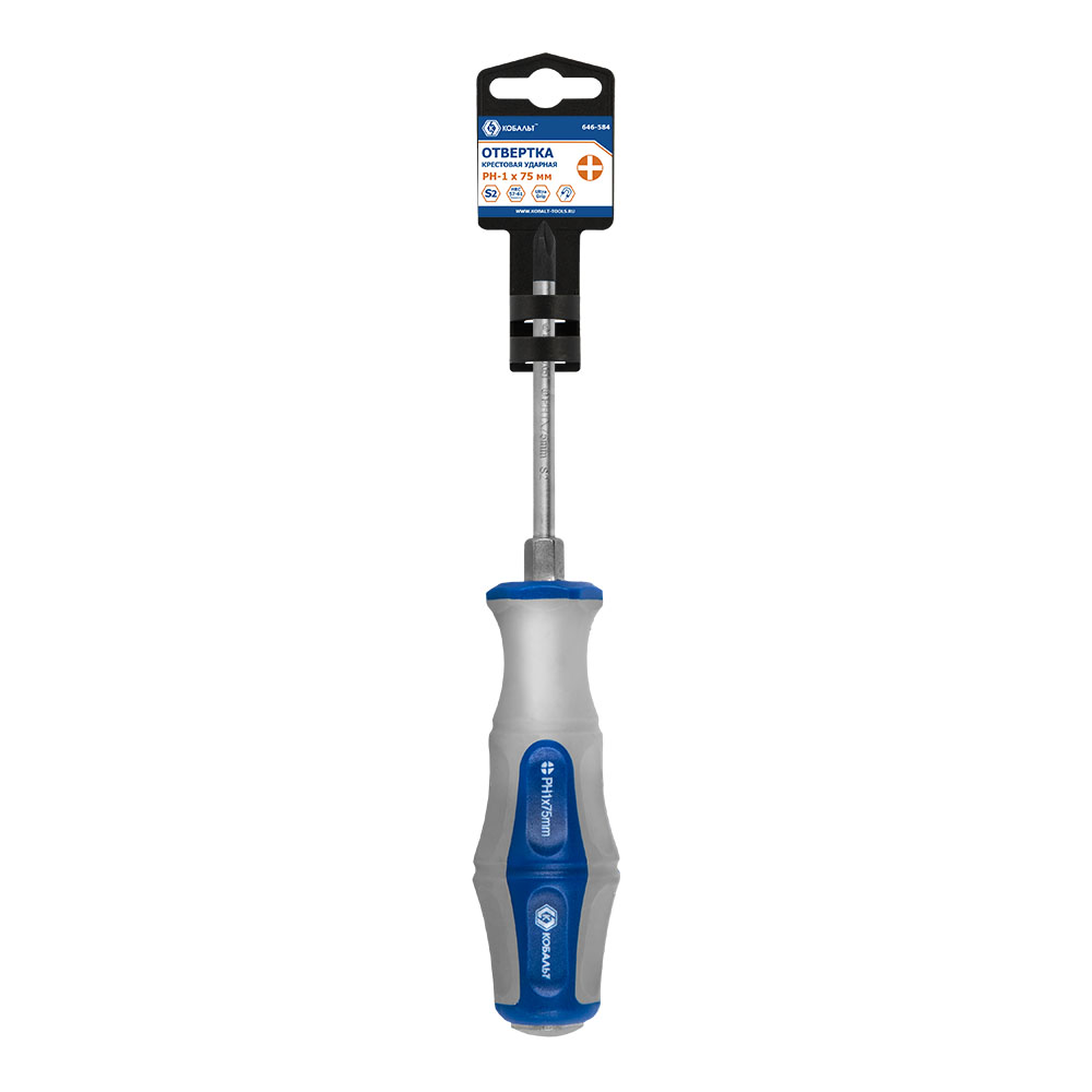 Отвертка ударная КОБАЛЬТ Ultra Grip PH-1 x 75 мм, сталь S2, двухкомпонентная рукоятка, подвес
