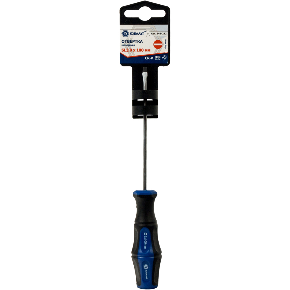 Отвертка Ultra Grip КОБАЛЬТ SL 3,0 х 100 мм, CR-V, двухкомпонентная рукоятка, подвес