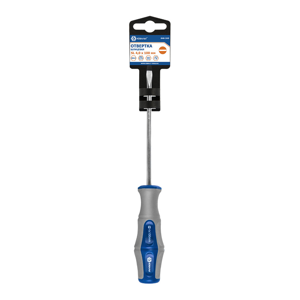 Отвертка Ultra Grip КОБАЛЬТ SL 4,0 х 100 мм, CR-V, двухкомпонентная рукоятка, подвес