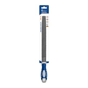 Рашпиль полукгруглый КОБАЛЬТ 247-774 тип насечки №2 - «личная» для чистовой обработки материалов , длина 250 мм. Предназначен для обработки поверхностей из дерева, фанеры, ДСП, пластмассы и других материалов. Двухкомпанентная рукоятка