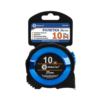 Рулетка КОБАЛЬТ Экстра 10м x 25мм, металлический корпус, толщина ленты 0,13 мм, автостоп, магнит, 2 стор. шкала