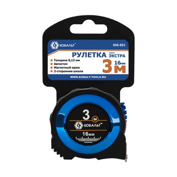 Рулетка КОБАЛЬТ Экстра 3м x 16мм, металлический корпус, толщина ленты 0,13 мм, автостоп, магнит, 2 стор. шкала
