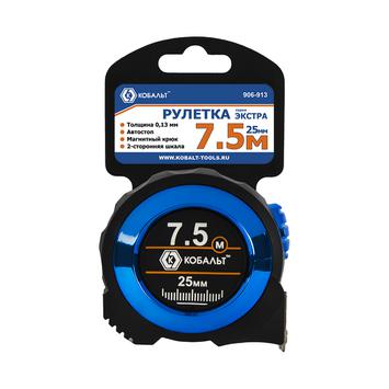Рулетка КОБАЛЬТ Экстра 7.5м x 25мм, металлический корпус, толщина ленты 0,13 мм, автостоп, магнит, 2 стор. шкала