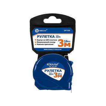 Рулетка КОБАЛЬТ Луч 3м x 16мм, корпус из ABS пластика, мех.стопор, белое мат. покрытие, толщина ленты 0.11 мм